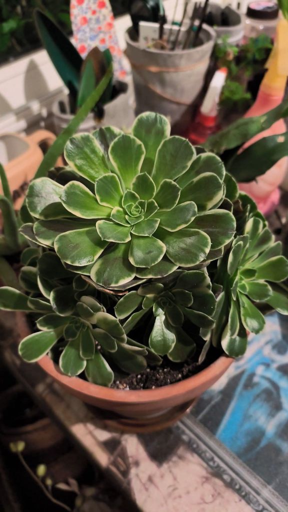 Cet Aeonium variegata a une pousse plutôt rapide et il semble rejeter assez facilement.