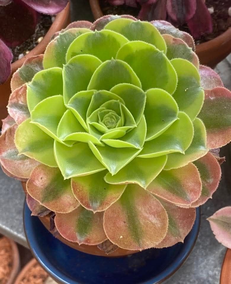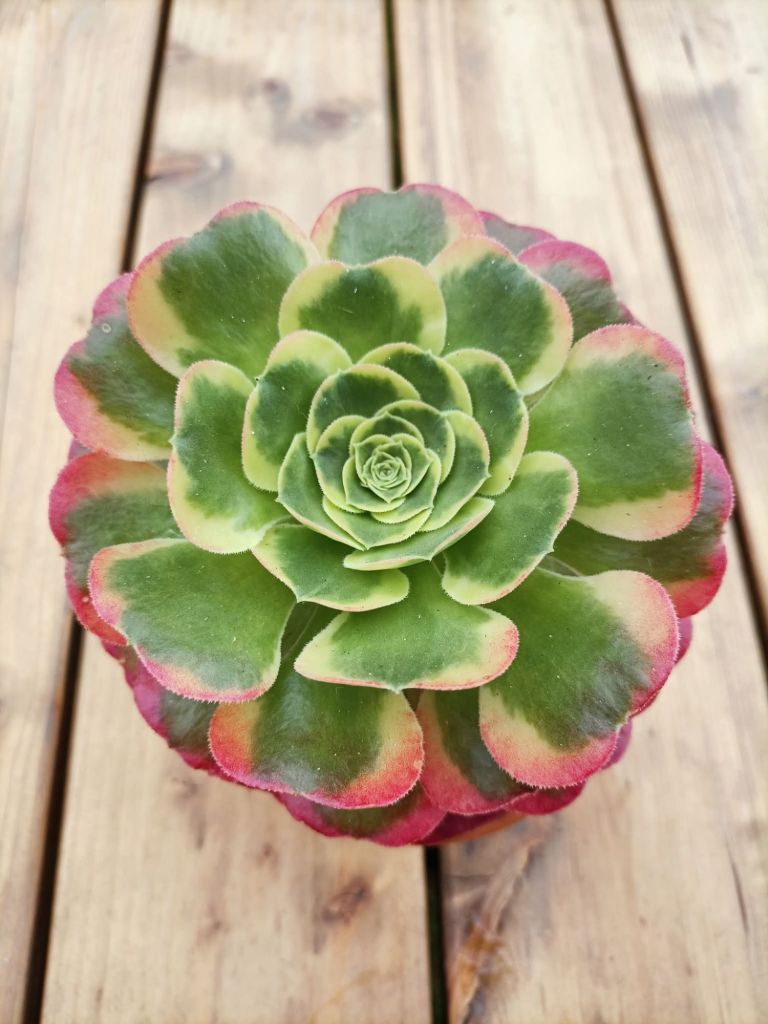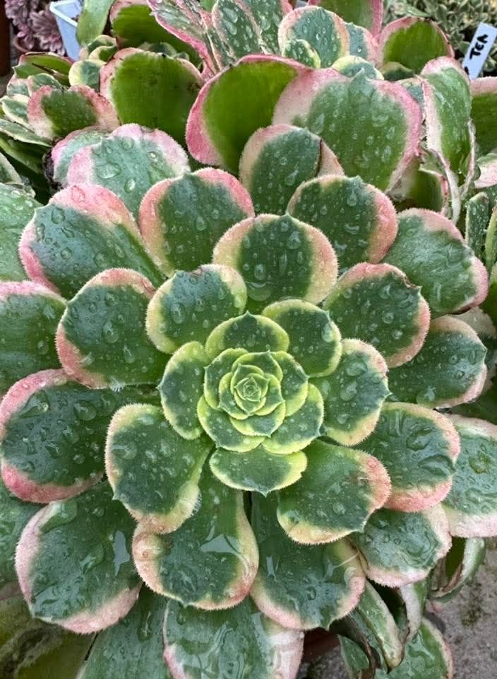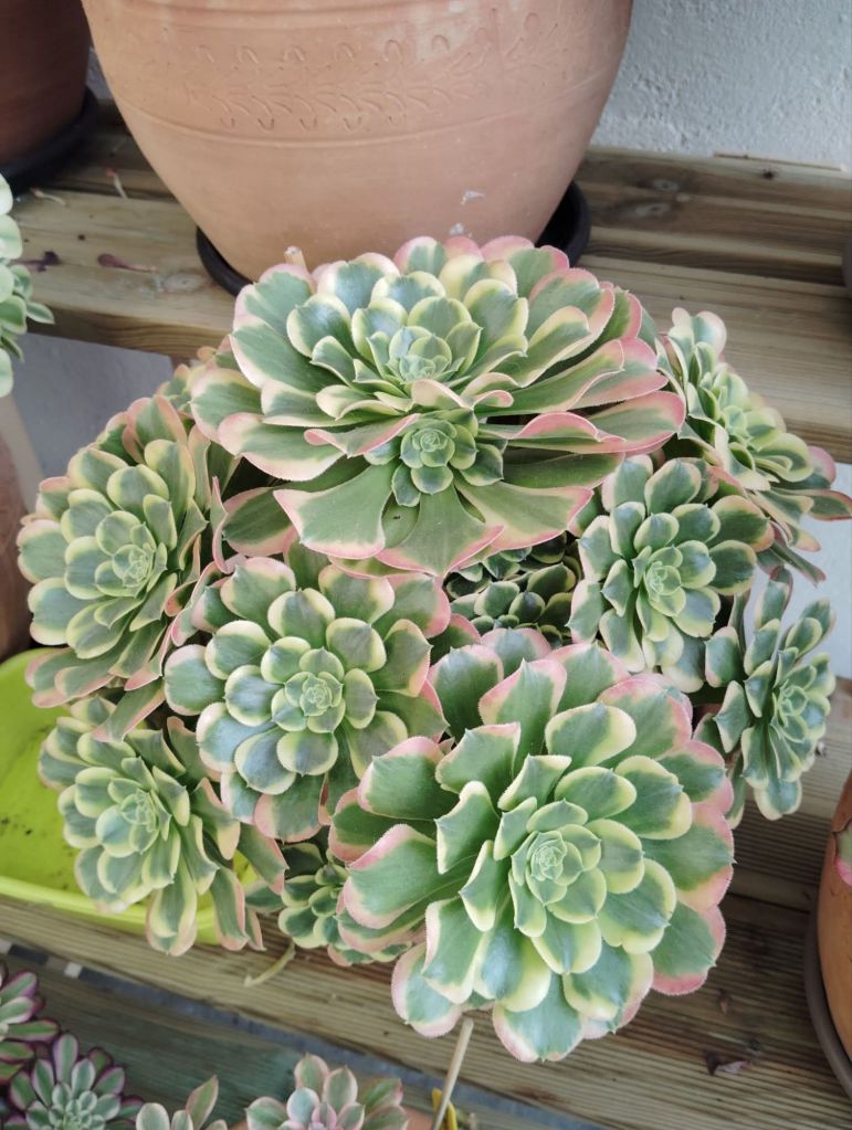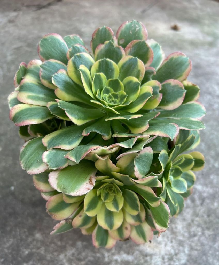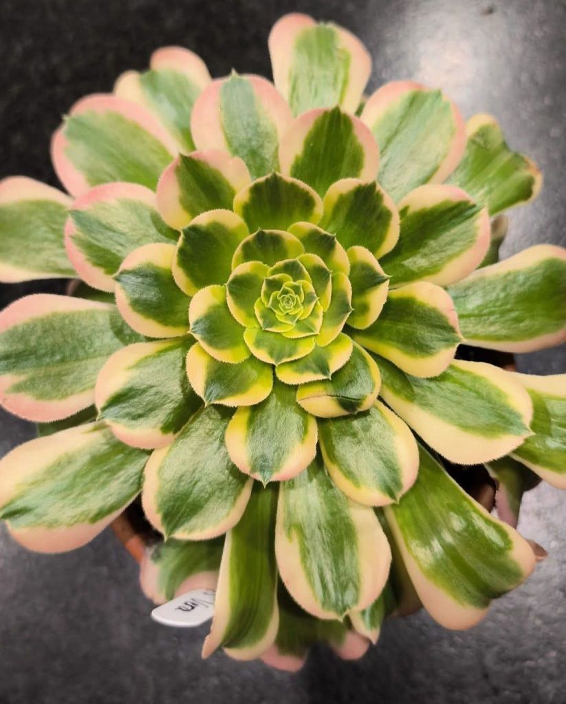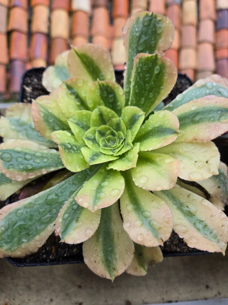 DESCRIPTION : L’Aeonium ‘Tesla’ est un Aeonium variegata issu probablement de l’Aeonium ‘Riverstones’.