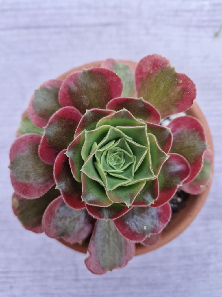 ORIGINE : Inconnue. Mutation probable de Riverstones qui est lui-même une mutation de l’Aeonium Pink Witch qui vient lui même de l’Aeonium Blushing Beauty.