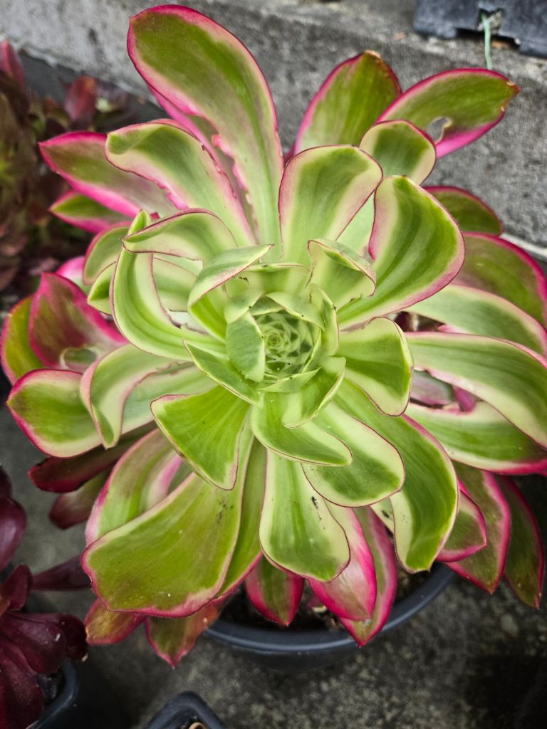 DESCRIPTION : L’Aeonium ‘Voodoo Purple Flame’ est un Aeonium variegata issu de la mutation de l’Aeonium ‘Voodoo’.