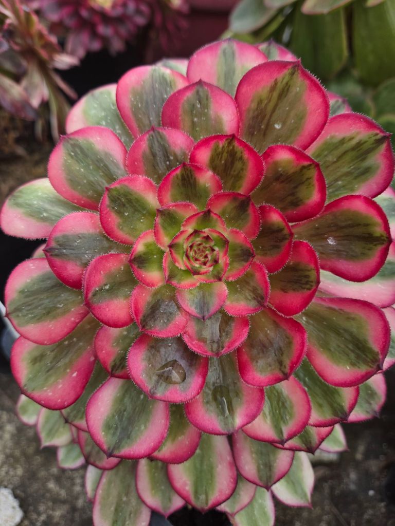 ORIGINE : Issu de la mutation de l’Aeonium ‘Mardi Gras’.