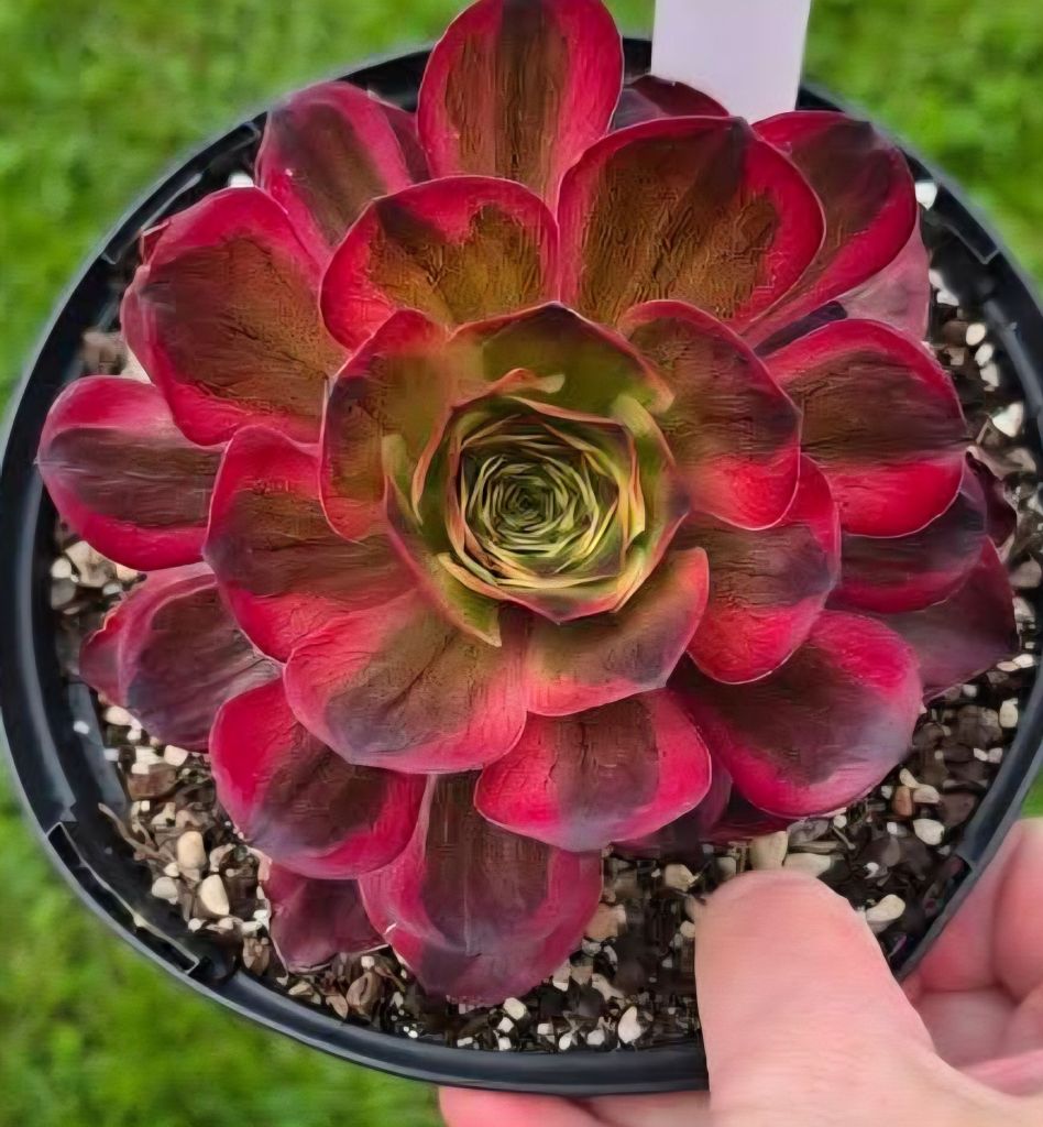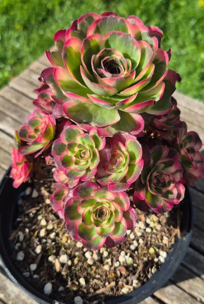 ORIGINE : Issu de la mutation de l’Aeonium ‘Charm Golden Rose’.