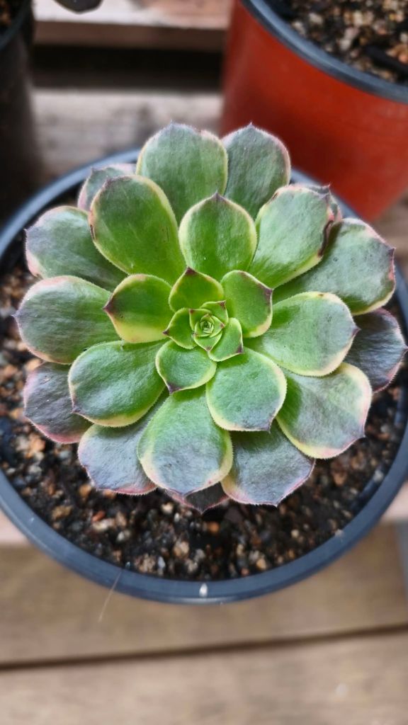 Cet Aeonium variegata a une pousse moyenne et rejette normalement.