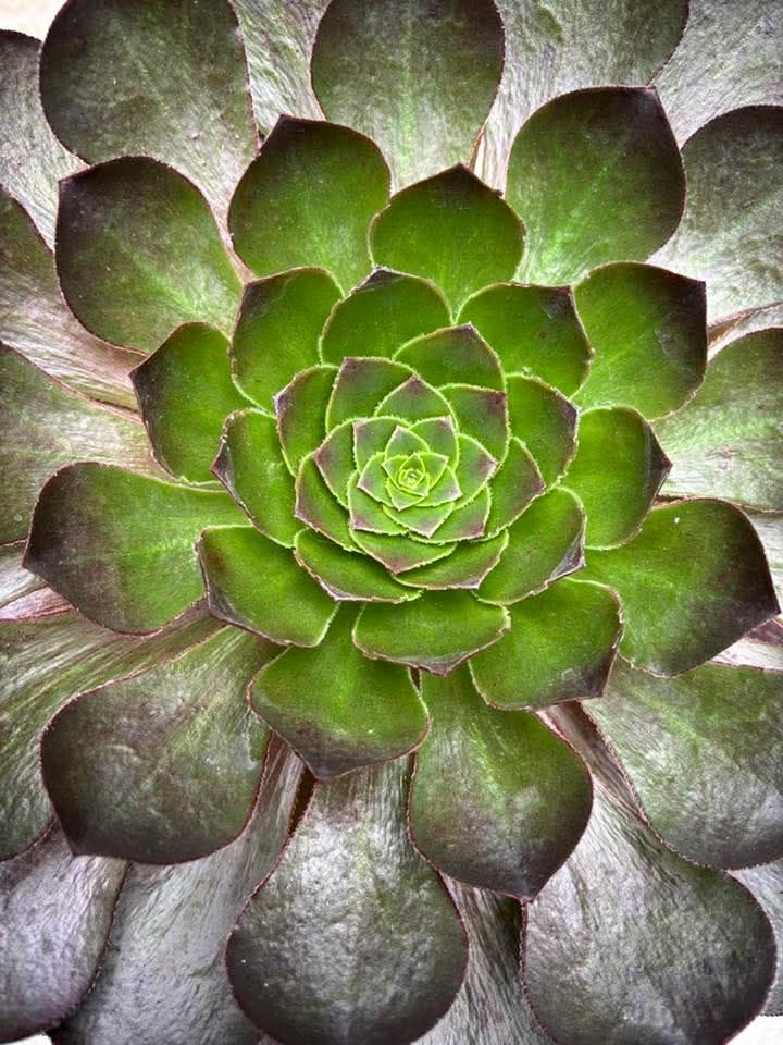 L’hybride intergénérique Surreal Succulents x Semponium ‘Halo’ doit son nom au liseré blanc qui apparaît sur chaque feuille lorsqu’elle est exposée à une forte lumière. Son port rappelle celui d’un Sempervivum, formant des touffes compactes à mesure qu’elle s’étend. La forme de ses feuilles, en revanche, évoque celle d’un Aeonium. Description d’après Surreal Succulents.