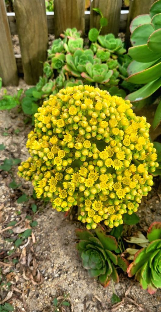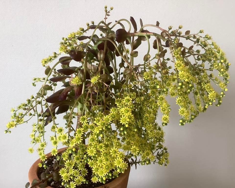 « Deux plantes ont été utilisées pour créer ces incroyables hybrides intergénériques, ce qui peut paraître simple au premier abord. Pourtant, leurs périodes de floraison sont diamétralement opposées. Les Aeoniums fleurissent au début du printemps, tandis que les Sempervivums fleurissent au cœur de l’été. Leur floraison simultanée est extrêmement rare. Réunir ces deux univers exige un timing précis, un savoir-faire pointu et une bonne dose de magie horticole.
