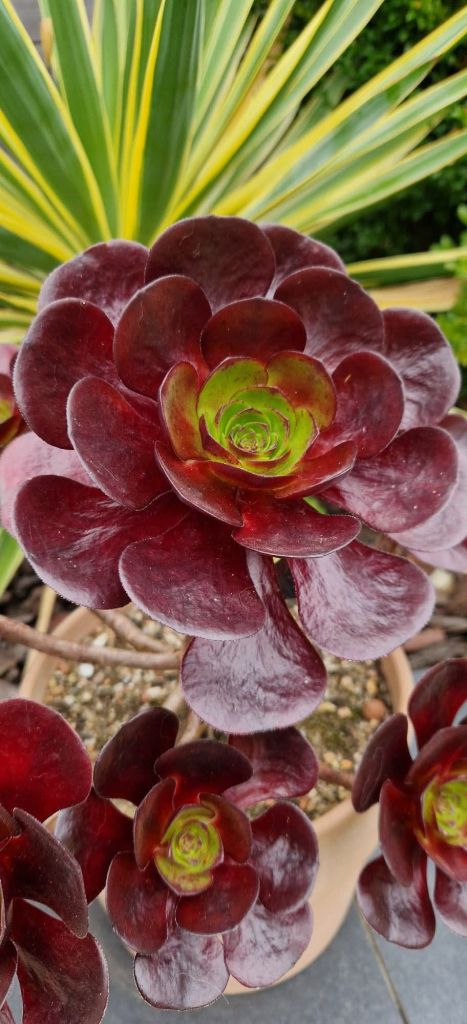 Issu de l’hybridation entre un Aeonium ‘Ice warrior’ et un Sempervivum ‘green ice’. La taille de sa rosette principale peut mesurer jusqu’à 50cm. N’ayant encore eu que peu de retour sur cette variété nous compléterons sa description plus tard.