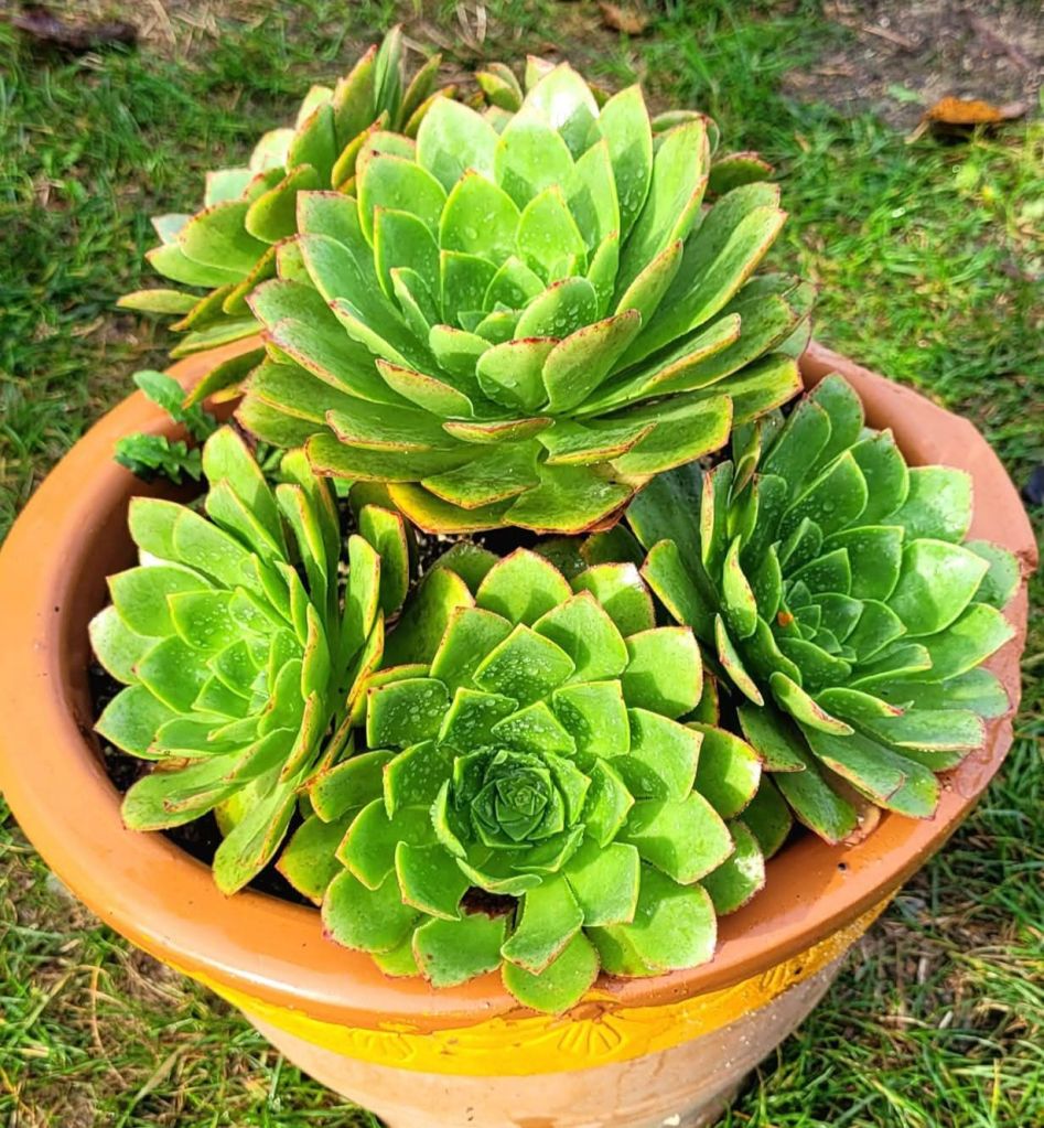 Issu de l’hybridation entre un Aeonium ‘Ice warrior’ et un Sempervivum ‘green ice’.