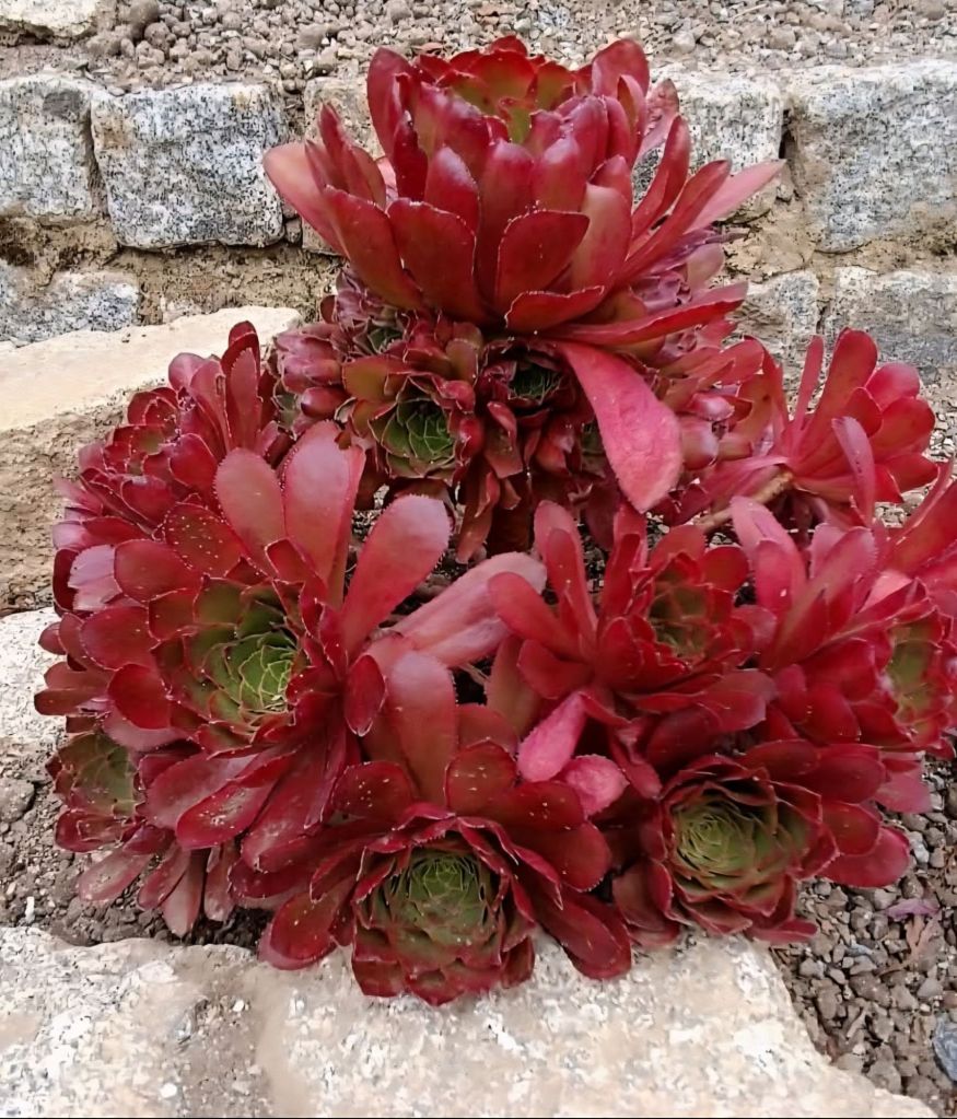 Deux à trois mois plus tard, à notre grande joie, nous avons observé une variation croissante parmi les jeunes plants : certains rouges, d’autres hauts et ressemblant à des Aeonium. À ce moment-là, nous savions que nous avions réussi ! Nous assistions à la naissance des premiers Semponiums hybrides officiels au monde.