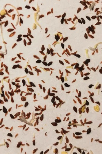 Il a ensuite laissé la fleur mûrir pendant huit semaines dans un endroit sec et ensoleillé. Après cette période, il a cueilli les capitules et les a laissés sécher complètement dans un sac en papier brun, dans un endroit frais et sec, pendant deux semaines supplémentaires.