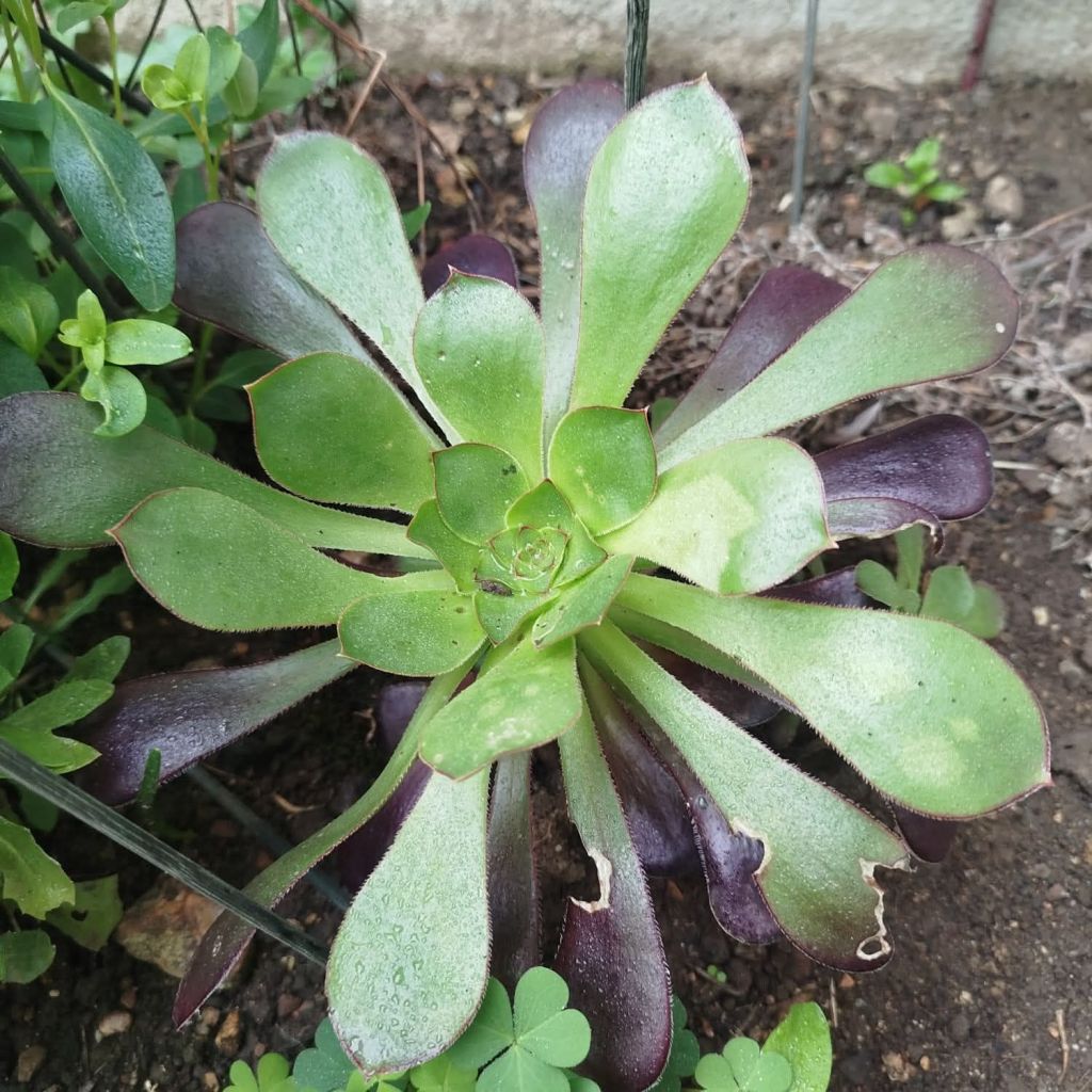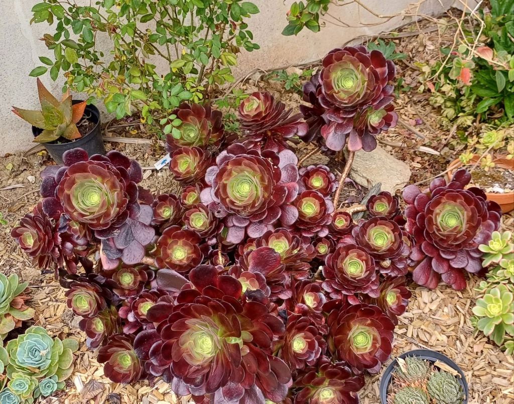 Il est le fruit du mariage de l’Aeonium ‘Zwartkop’ et de l’Aeonium canariense. Cet Aeonium a un port harmonieux et ramifié, avec de très nombreuses et grandes rosettes, il ne se dégarnit pas contrairement à ‘Zwartkop’. Ces rosettes sont de couleur verte en hiver mais prennent sous les rayons du soleil de jolies couleurs pourpres voire noires. Il peut atteindre une taille d’environ 1 mètre de haut. Cet Aeonium est très facile de culture. Un indispensable dans toute collection !