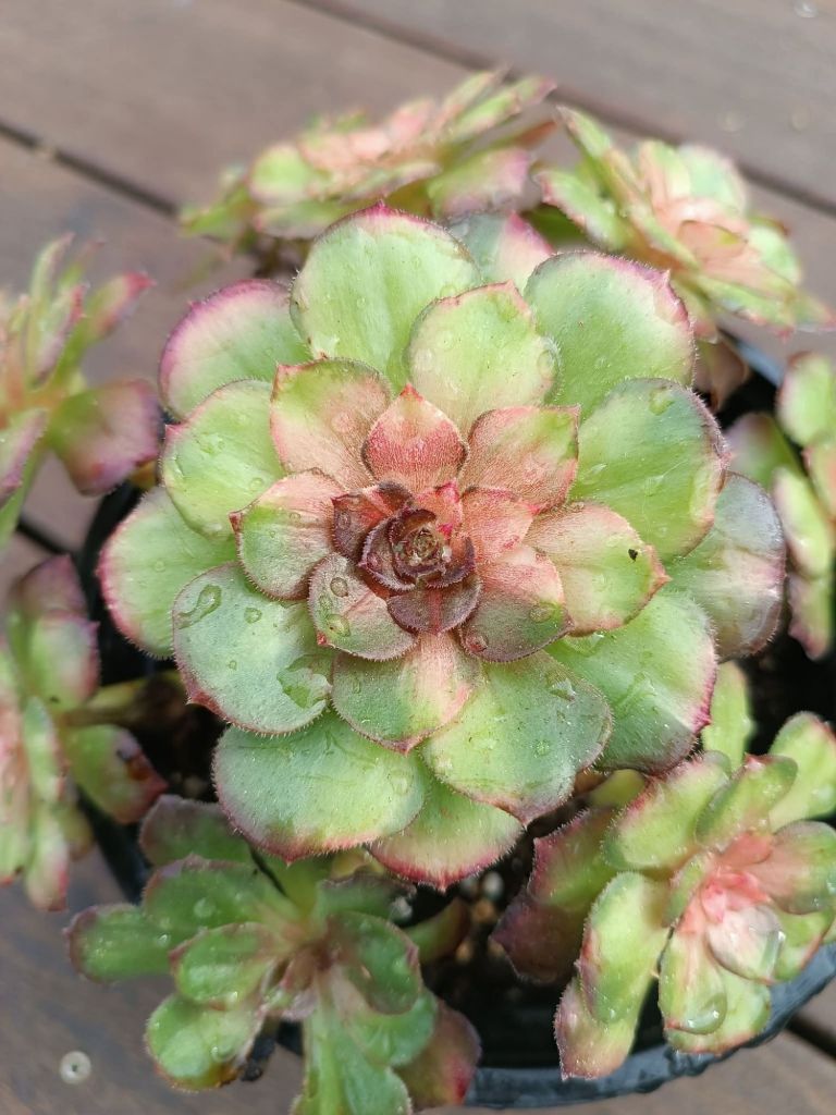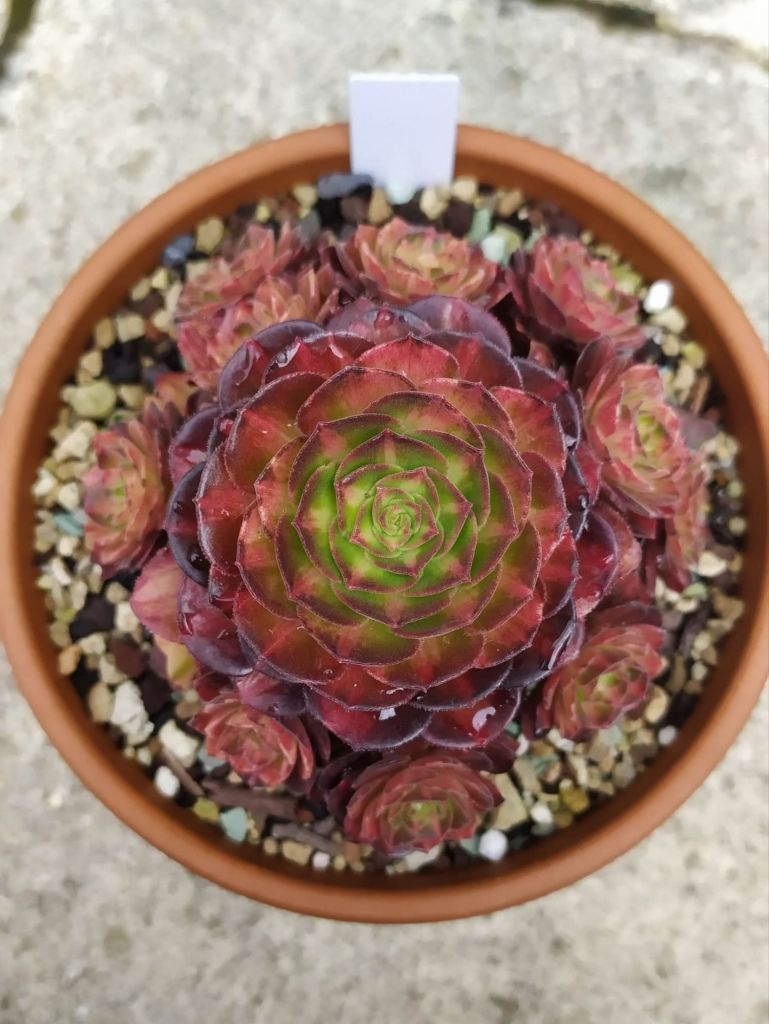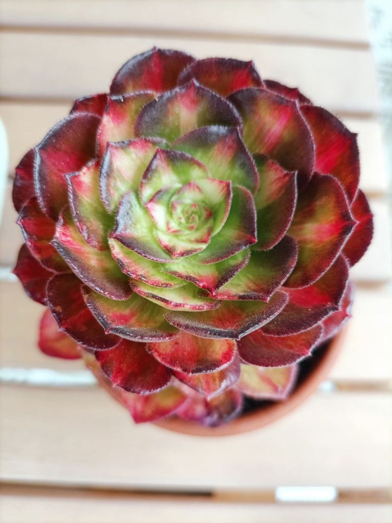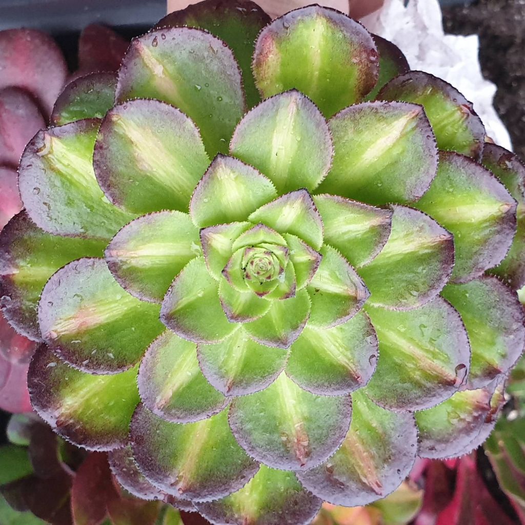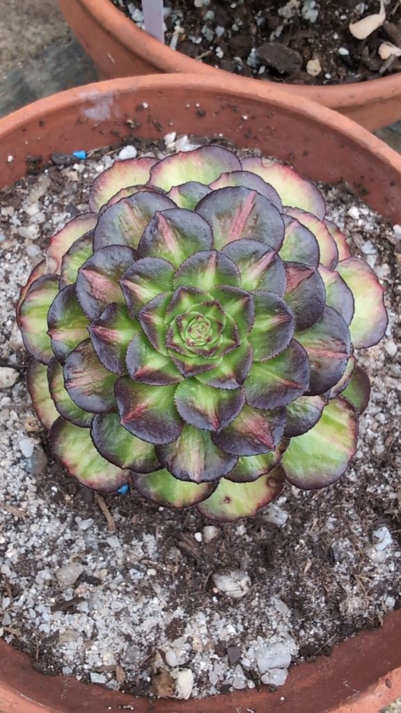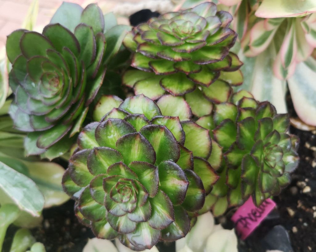 ORIGINE : Issu de la mutation de type middle de l’Aeonium ‘Neptune’ qui est lui même issu de la mutation de l’Aeonium ‘Madeira Rose’ aka ‘Halloween’
