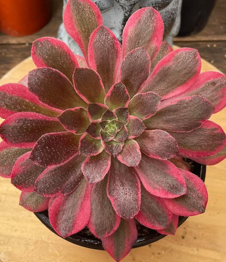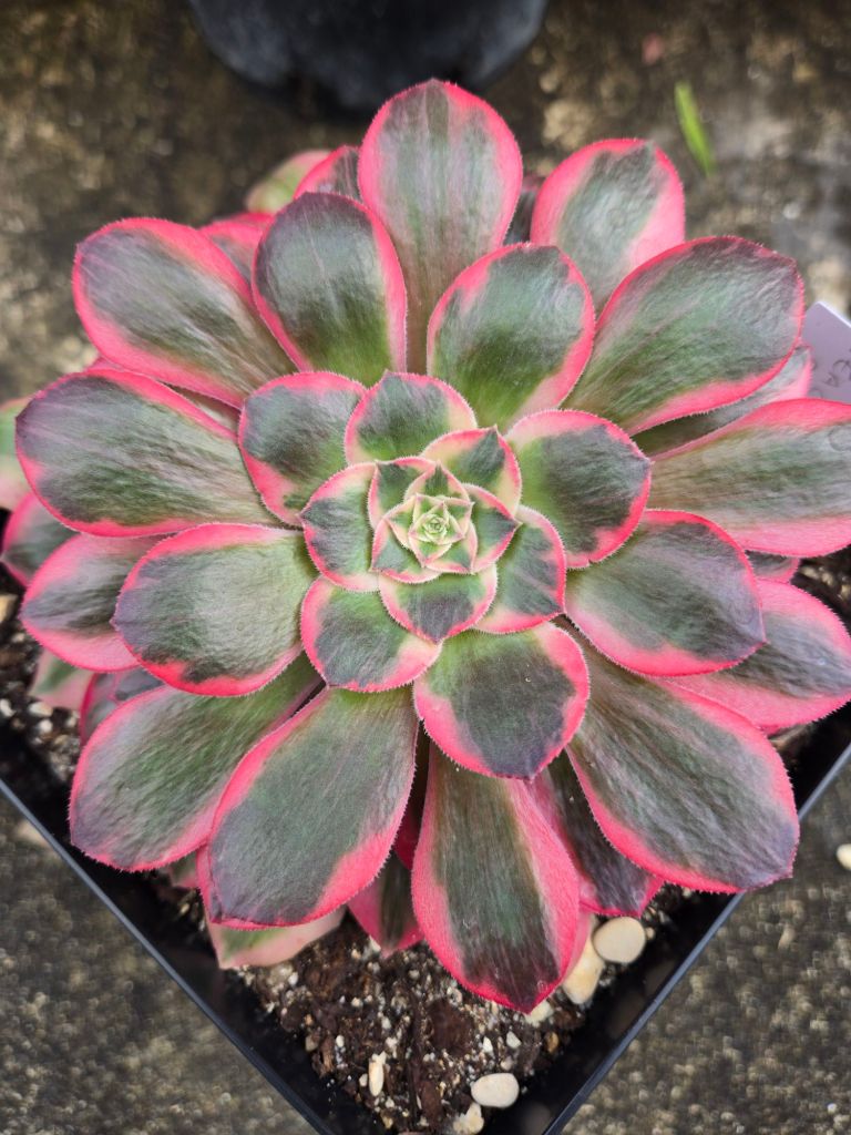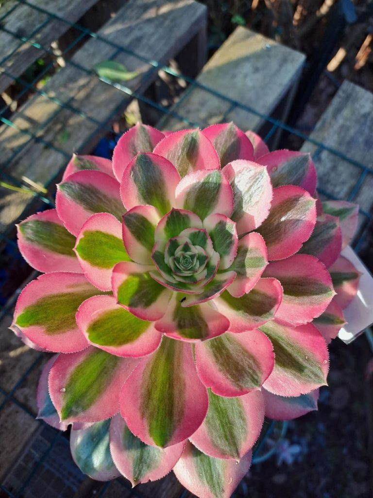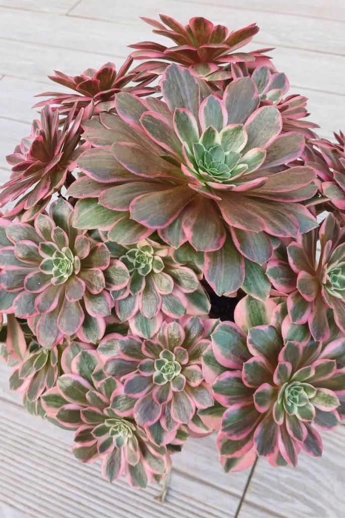 ORIGINE : Issu de la mutation de l’Aeonium ‘Blushing Beauty’.