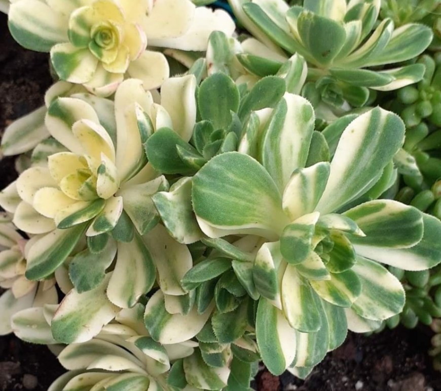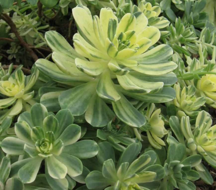 L’aeonium ‘Suncup’ est un Aeonium variegata issu de l’Aeonium botanique castello-pavaie.