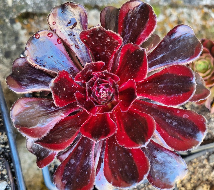L’Aeonium ‘Zwartkop BigBang’ est un Aeonium variegata issu de l’Aeonium ‘Zwartkop’. Il se caractérise par des stries noires réparties de façon aléatoires sur les feuilles comme tous les Aeonium qui ont des mutations de type ‘Big Bang’. Continuer de lire Aeonium Zwartkop Bigbang